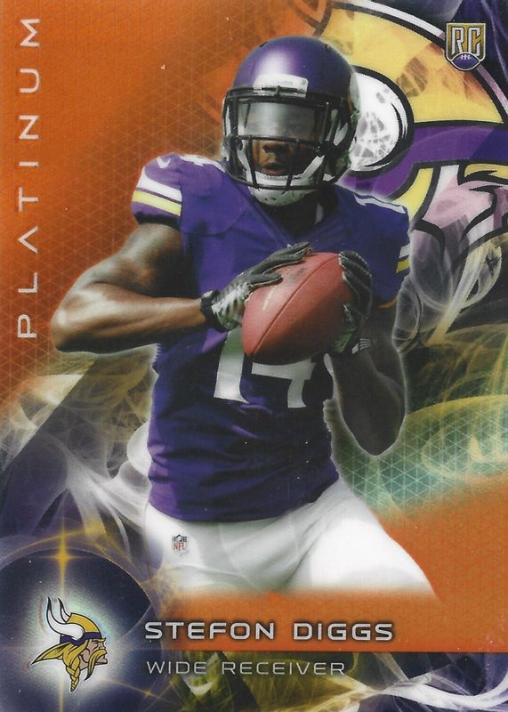 The Stefon Diggs 2015 Topps Platinum #141 Orange Refractor Rookie card in Raw condition has moved up $2.00 (+202%) in the last 30 days and was last sold for $2.99 .