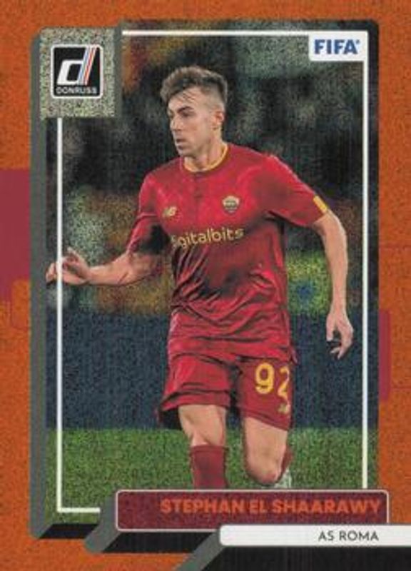 The Stephan El Shaarawy 2022 Donruss #145 Orange card is 1 of 25 Stephan El Shaarawy's card variations in the 2022 Donruss set being tracked by Sports Card Investor, including Base, Green, Optic, Optic - Green Ice, and Optic - Holo.
