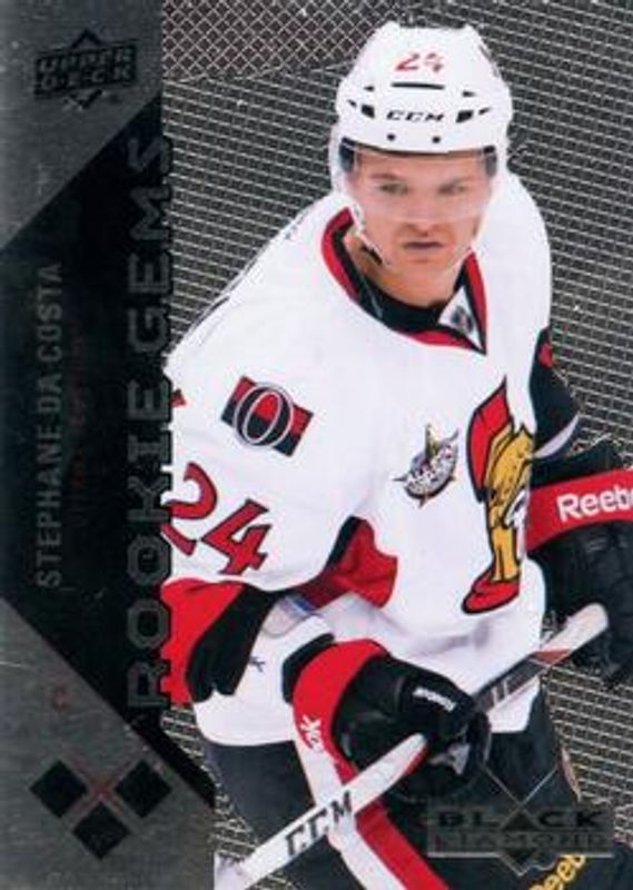 The Stephane Da Costa 2011 Upper Deck Black Diamond #200 Base Rookie card is 1 of 4 Stephane Da Costa's card variations in the 2011 Upper Deck Black Diamond set being tracked by Sports Card Investor, including Ruby /100, Gold /10, and Platinum /1.