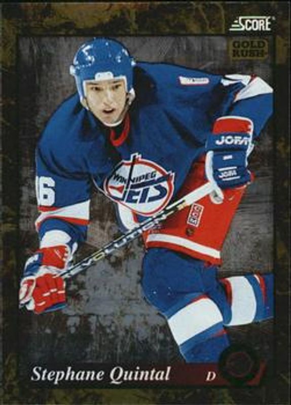 The Stephane Quintal 1993 Score #509 Gold Rush card is 1 of 3 Stephane Quintal's card variations in the 1993 Score set being tracked by Sports Card Investor, including #412 Base, and #509 Base.