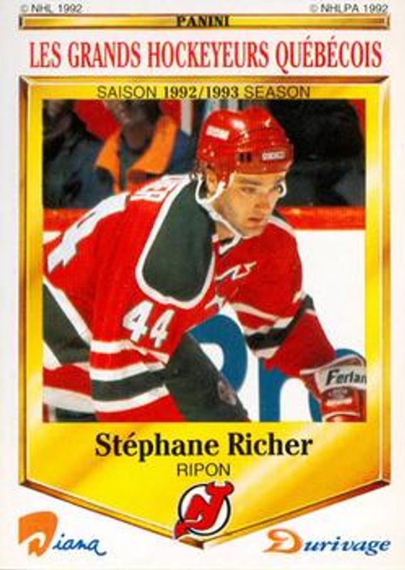 Stephane Richer 1992 Panini Durivage #18 Base RAW Price Guide