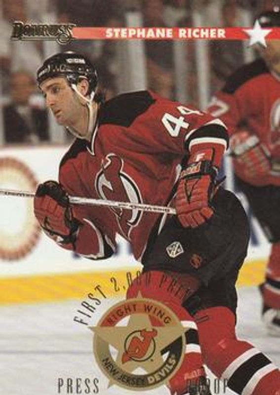 The Stephane Richer 1996 Donruss #108 Press Proofs card is 1 of 2 Stephane Richer's card variations in the 1996 Donruss set being tracked by Sports Card Investor, including Base.