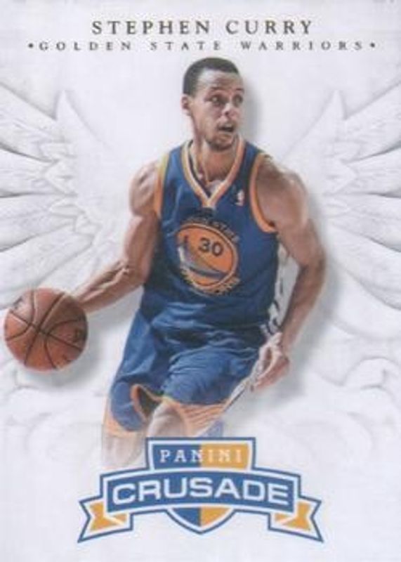 The Stephen Curry 2012 Crusade #79 Base card is 1 of 26 Stephen Curry's card variations in the 2012 Crusade set being tracked by Sports Card Investor, including Prizm Blue & Gold, Prizm Red & Gold /99, Prizm Purple & Gold /49, Prizm Green & Gold /25, and Prizm Gold /10.