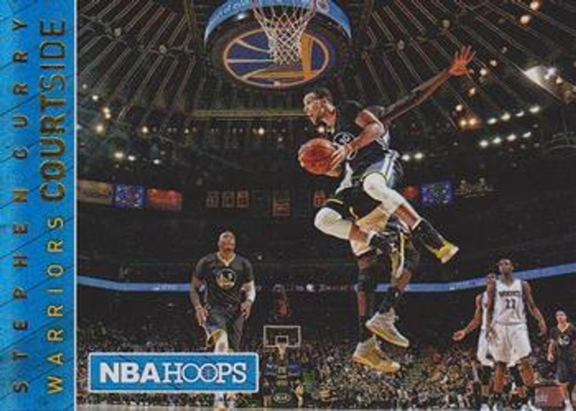 The Stephen Curry 2015 Hoops #14 Courtside card is 1 of 36 Stephen Curry's card variations in the 2015 Hoops set being tracked by Sports Card Investor, including Base, Gold, Green, Red Back, and Blue /399.