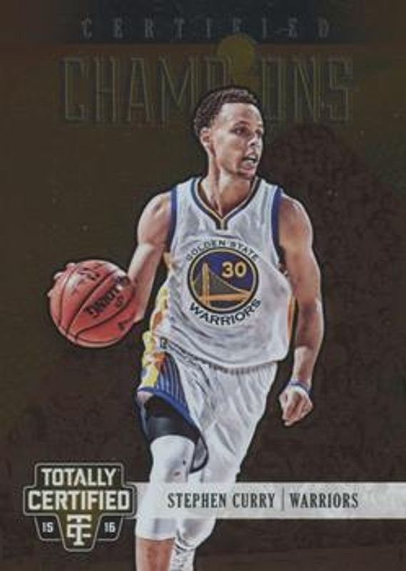 The Stephen Curry 2015 Totally Certified #15 Certified Champions /199 card is 1 of 18 Stephen Curry's card variations in the 2015 Totally Certified set being tracked by Sports Card Investor, including Base, Mirror Red /149, Mirror Blue /99, Mirror Purple /50, and Mirror Camo /25.