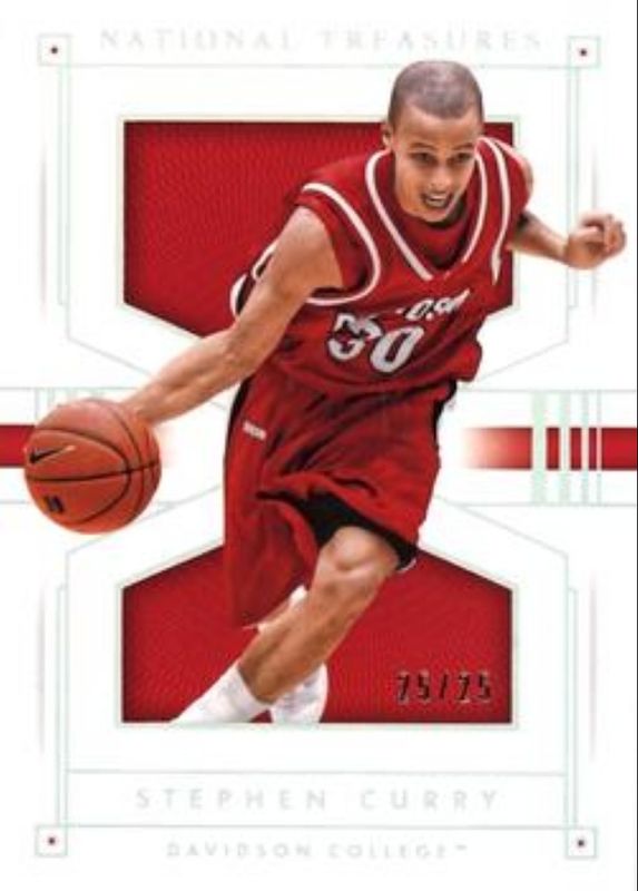 The Stephen Curry 2016 National Treasures Collegiate #43 Silver /25 card is 1 of 10 Stephen Curry's card variations in the 2016 National Treasures Collegiate set being tracked by Sports Card Investor, including Base /99, Red /49, Gold /10, Black /5, and Platinum /1.