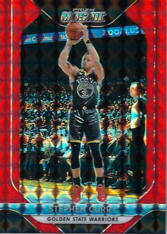 This card is 1 of 9 Stephen Curry's card variations in the 2018 Prizm Mosaic set being tracked by Sports Card Investor, including Base, Blue, Green, Red, and Purple /49.