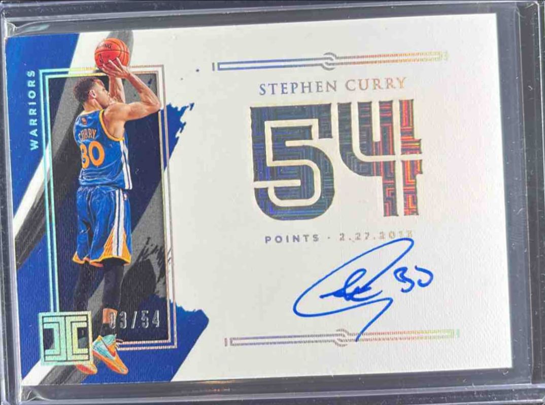The Stephen Curry 2020 Impeccable #IS-SCU Impeccable Stats Autographs /59 card is 1 of 55 Stephen Curry's card variations in the 2020 Impeccable set being tracked by Sports Card Investor, including Base /99, Asia /88, Silver /75, Gold /60, and Holo Silver /25.