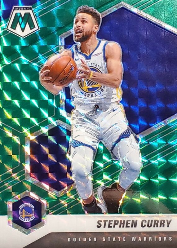 The Stephen Curry 2020 Mosaic #175 Green card in Raw condition has moved up $2.76 (+185%) in the last 30 days and was last sold for $4.25 .