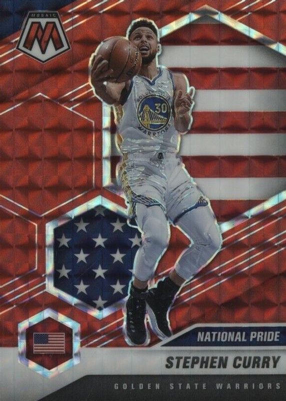 The Stephen Curry 2020 Mosaic #249 National Pride - Red card in Raw condition has moved up $3.46 (+225%) in the last 30 days and was last sold for $5.00 .