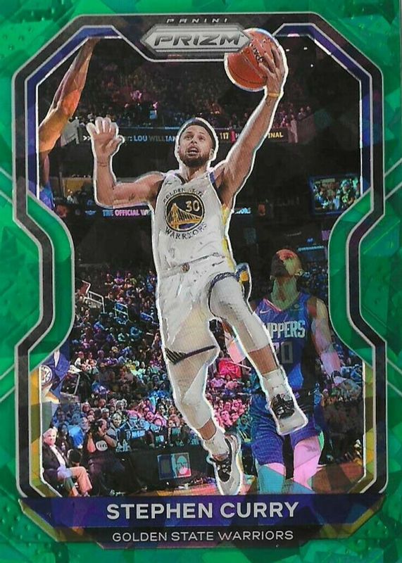2020-21 Panini Prizm Green Cracked Ice Prizm Stephen Curry Warriors GX