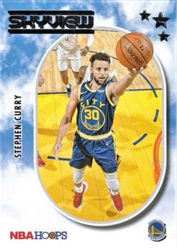 The Stephen Curry 2021 Hoops #9 SkyView card is 1 of 75 Stephen Curry's card variations in the 2021 Hoops set being tracked by Sports Card Investor, including #18 Base, #269 Base, #18 Anniversary Edition, #18 Blue, and #18 Green Ice.