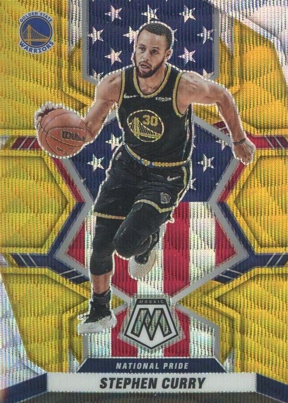 The Stephen Curry 2021 Mosaic #247 National Pride - Gold Wave card in Raw condition has not changed in price in the last 30 days and was last sold for $29.99 .