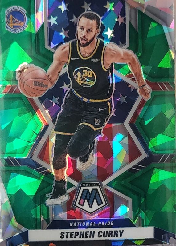 The Stephen Curry 2021 Mosaic #247 National Pride - Green Ice card in Raw condition has not changed in price in the last 30 days and was last sold for $2.60 .