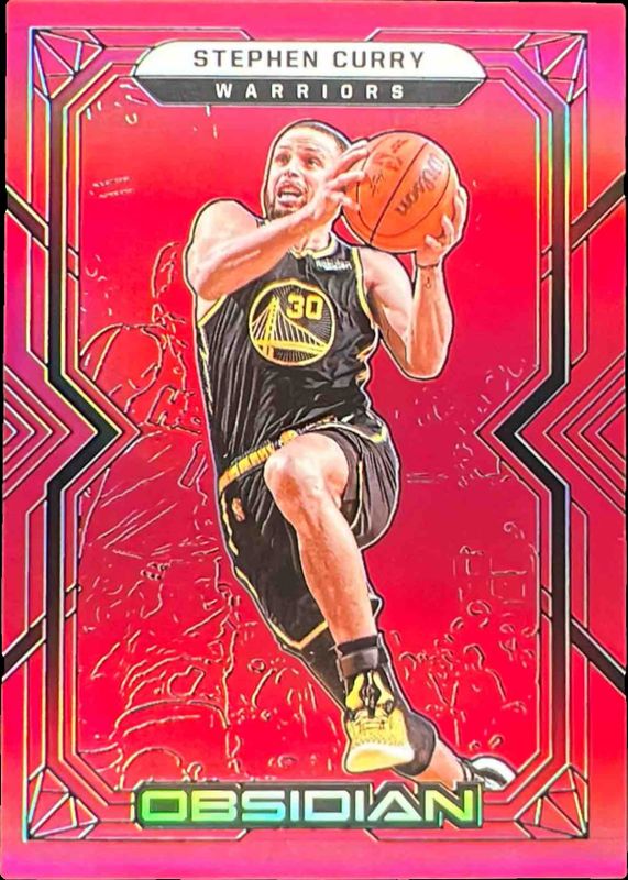 The Stephen Curry 2021 Obsidian #30 Electric Etch Red Flood card is 1 of 74 Stephen Curry's card variations in the 2021 Obsidian set being tracked by Sports Card Investor, including Base, Electric Etch Asia, Electric Etch Blue Flood, Electric Etch White Pulsar, and Electric Etch Yellow Flood.