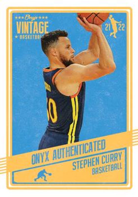 The Stephen Curry 2021 Onyx Vintage #VBKO Base card is 1 of 5 Stephen Curry's card variations in the 2021 Onyx Vintage set being tracked by Sports Card Investor, including Black Signatures, Blue Signatures, Green Signatures, and Red Signatures.