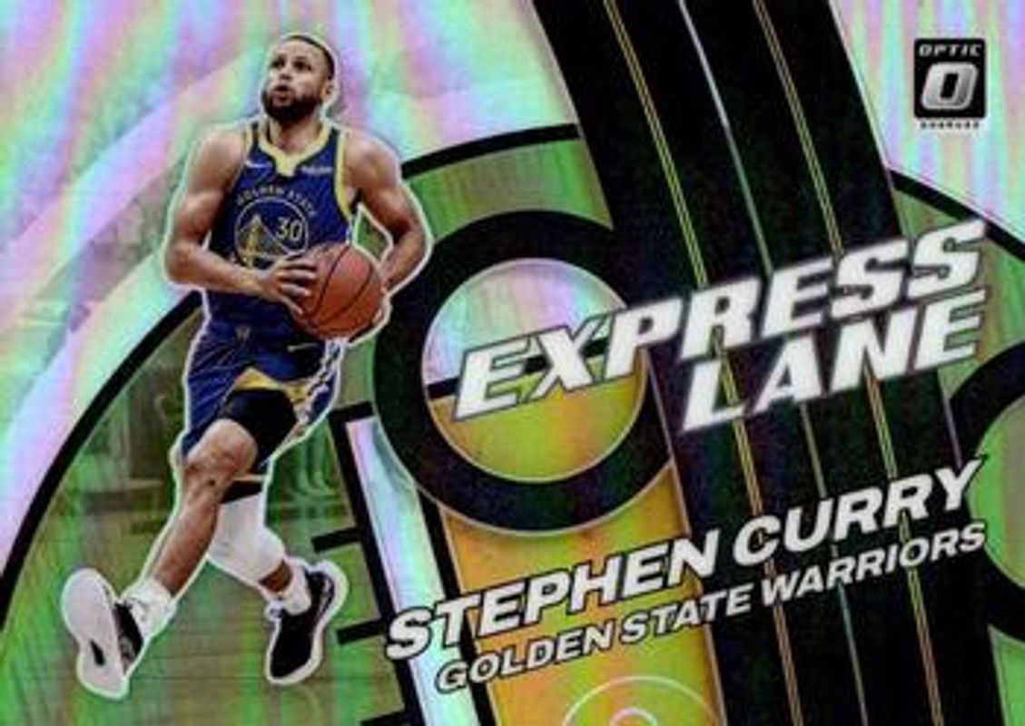 The Stephen Curry 2021 Optic #4 Express Lane - Lime Green /149 card is 1 of 146 Stephen Curry's card variations in the 2021 Optic set being tracked by Sports Card Investor, including Base, Blue Pulsar, Blue Velocity, Checkerboard, and Choice.