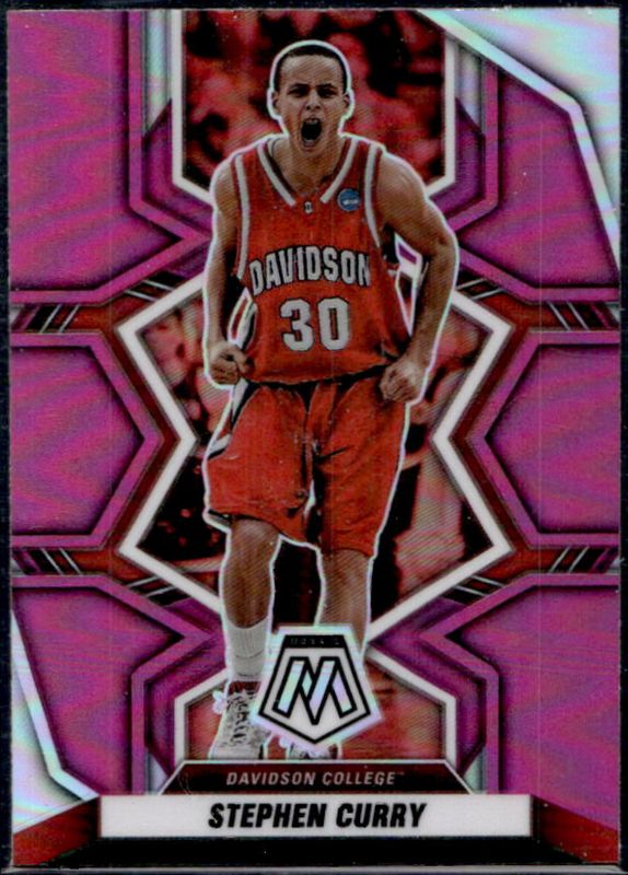 The Stephen Curry 2022 Chronicles Draft Picks #24 Mosaic - Pink card is 1 of 103 Stephen Curry's card variations in the 2022 Chronicles Draft Picks set being tracked by Sports Card Investor, including Essentials, Essentials - Black, Essentials - Bronze, Essentials - Pink, and Essentials - Pulsar.