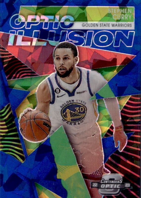 2022-23 Contenders Optic Illusion Blue Cracked Ice Prizm #4 Stephen Curry 29/75