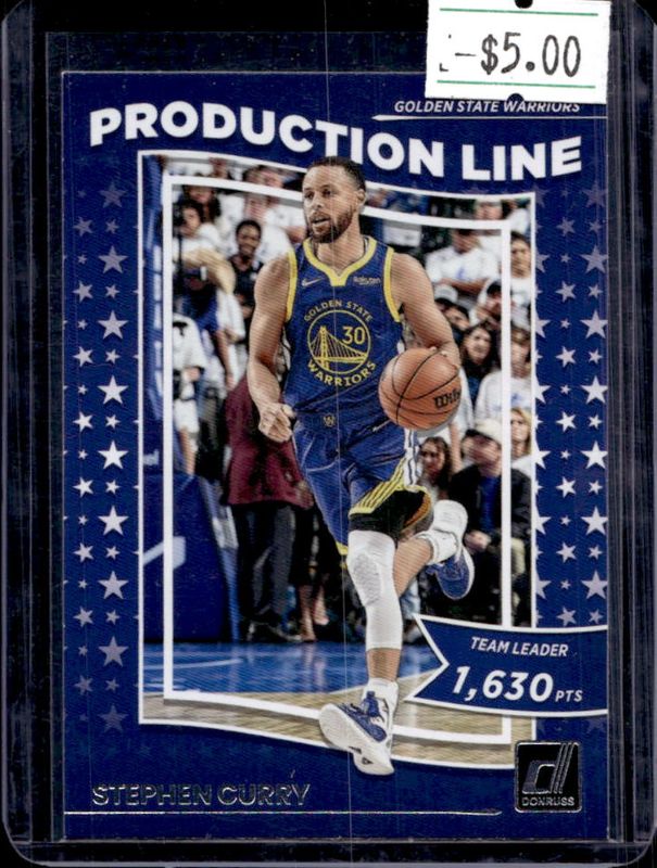 The Stephen Curry 2022 Donruss #2 Production Line card is 1 of 75 Stephen Curry's card variations in the 2022 Donruss set being tracked by Sports Card Investor, including Base, Holo Green Laser, Holo Red & Gold Laser, Press Proof Silver, and Yellow Flood.