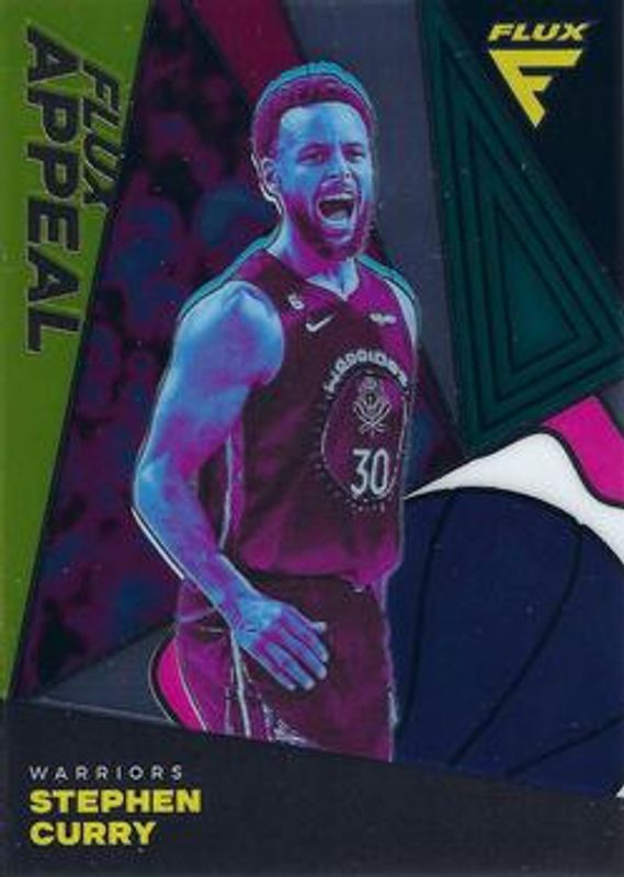 The Stephen Curry 2022 Flux #12 Flux Appeal card is 1 of 44 Stephen Curry's card variations in the 2022 Flux set being tracked by Sports Card Investor, including Base, Moonlight, Red Cracked Ice, Silver, and Silver Mojo.