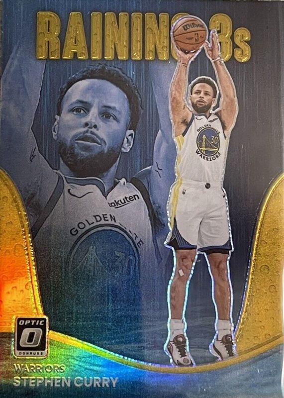 2022-23 Panini Donruss Optic Stephen Curry Raining 3s Gold #/10 Warriors