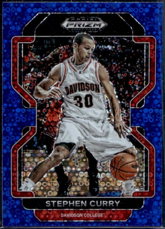 The Stephen Curry 2022 Prizm Draft Picks #45 Blue Circles card is 1 of 110 Stephen Curry's card variations in the 2022 Prizm Draft Picks set being tracked by Sports Card Investor, including #45b Base, #45 Base, #45 Choice Blue Yellow & Green, #45b Choice Blue Yellow & Green, and #45b Choice Tiger Stripe.