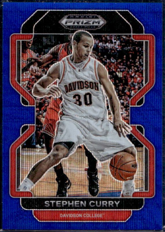 The Stephen Curry 2022 Prizm Draft Picks #45 Blue Wave /249 card is 1 of 110 Stephen Curry's card variations in the 2022 Prizm Draft Picks set being tracked by Sports Card Investor, including #45b Base, #45 Base, #45 Blue Circles, #45 Choice Blue Yellow & Green, and #45b Choice Blue Yellow & Green.