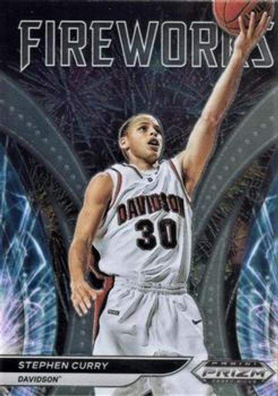 The Stephen Curry 2022 Prizm Draft Picks #FW-SC Fireworks card is 1 of 110 Stephen Curry's card variations in the 2022 Prizm Draft Picks set being tracked by Sports Card Investor, including #45b Base, #45 Base, #45 Blue Circles, #45 Choice Blue Yellow & Green, and #45b Choice Blue Yellow & Green.