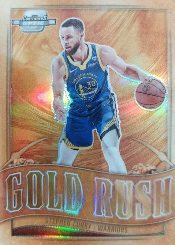 The Stephen Curry 2023 Contenders Optic #4 Gold Rush /(SSP) card in Raw condition has moved up $9.94 (+22.6%) in the last 30 days and was last sold for $53.84 .