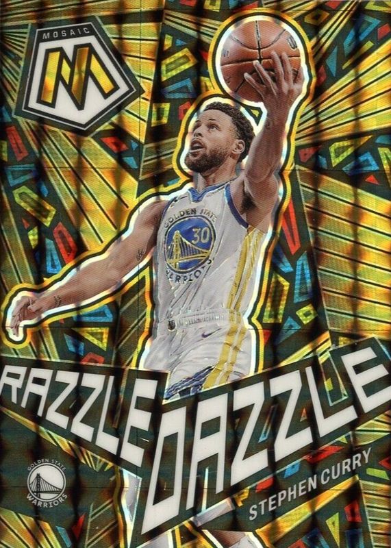 The Stephen Curry 2023 Mosaic #2 Razzle Dazzle /(SSP) card in Raw condition has moved down -$0.01 (-0.0%) in the last 30 days and was last sold for $59.99 .