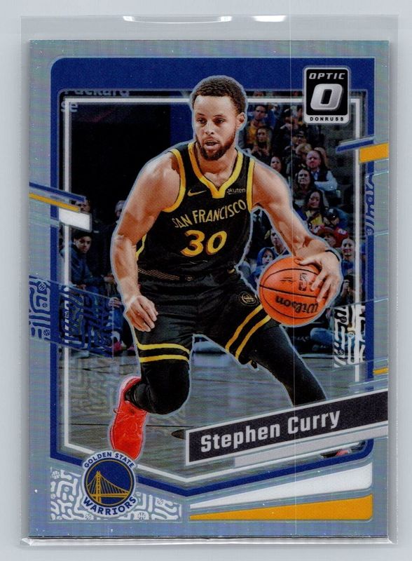 The Stephen Curry 2023 Optic #198 Holo card is 1 of 167 Stephen Curry's card variations in the 2023 Optic set being tracked by Sports Card Investor, including Base, Blue Velocity, Checkerboard, Choice Red & Green, and Fast Break.