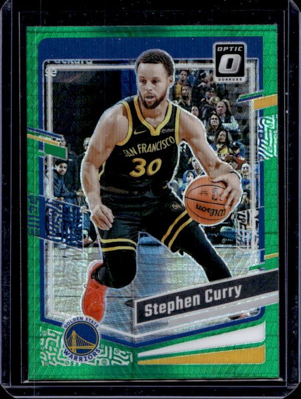 The Stephen Curry 2023 Optic #198 Hyper Green card is 1 of 167 Stephen Curry's card variations in the 2023 Optic set being tracked by Sports Card Investor, including Base, Blue Velocity, Checkerboard, Choice Red & Green, and Fast Break.