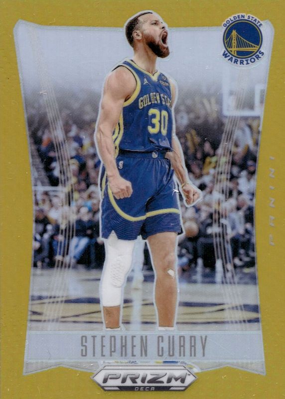 The Stephen Curry 2023 Prizm Deca #144 Gold /10 card in Raw condition has not changed in price in the last 30 days and was last sold for $11,000.00 .