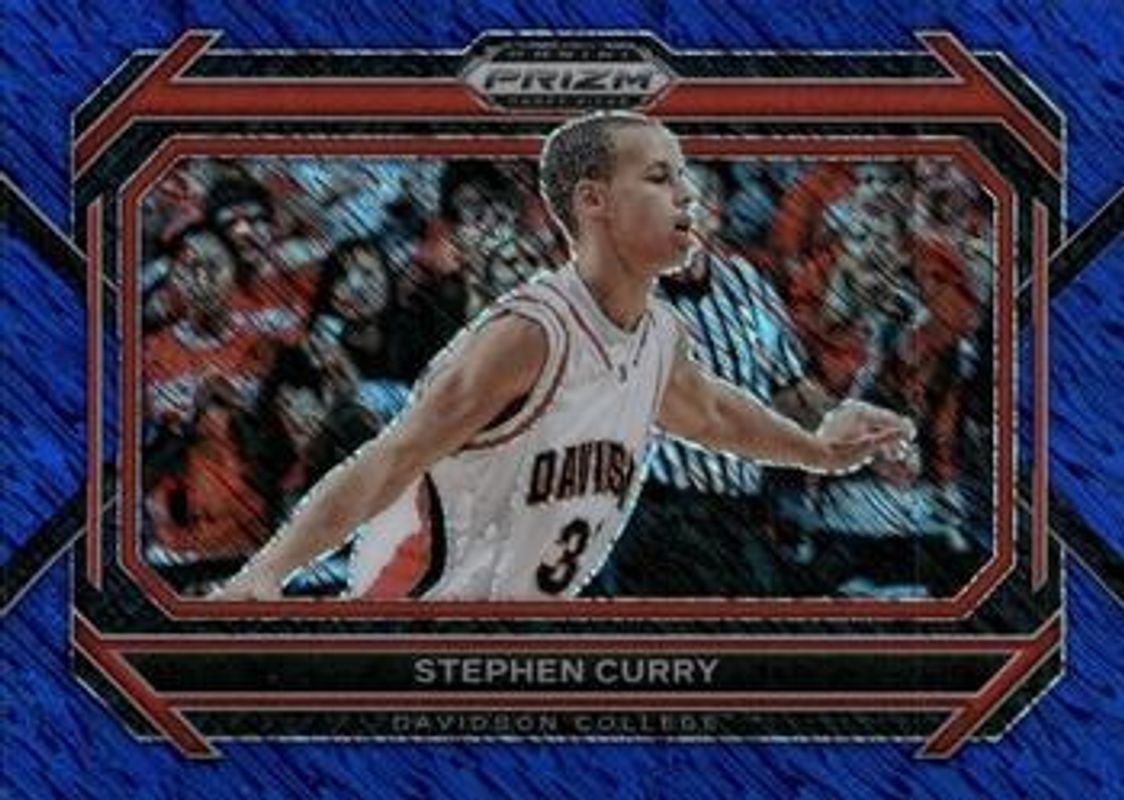 The Stephen Curry 2023 Prizm Draft Picks #53b Variation - Blue Shimmer /19 card is 1 of 109 Stephen Curry's card variations in the 2023 Prizm Draft Picks set being tracked by Sports Card Investor, including Base, Variation, Choice Blue Yellow Green, Green, and Green Wave.