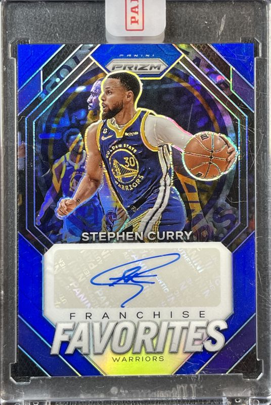 The Stephen Curry 2023 Prizm #FF-CUR Franchise Favorites Signatures - Blue /49 card is 1 of 116 Stephen Curry's card variations in the 2023 Prizm set being tracked by Sports Card Investor, including Base, Blue Wave, Choice Blue Yellow Green, Fast Break, and Green.