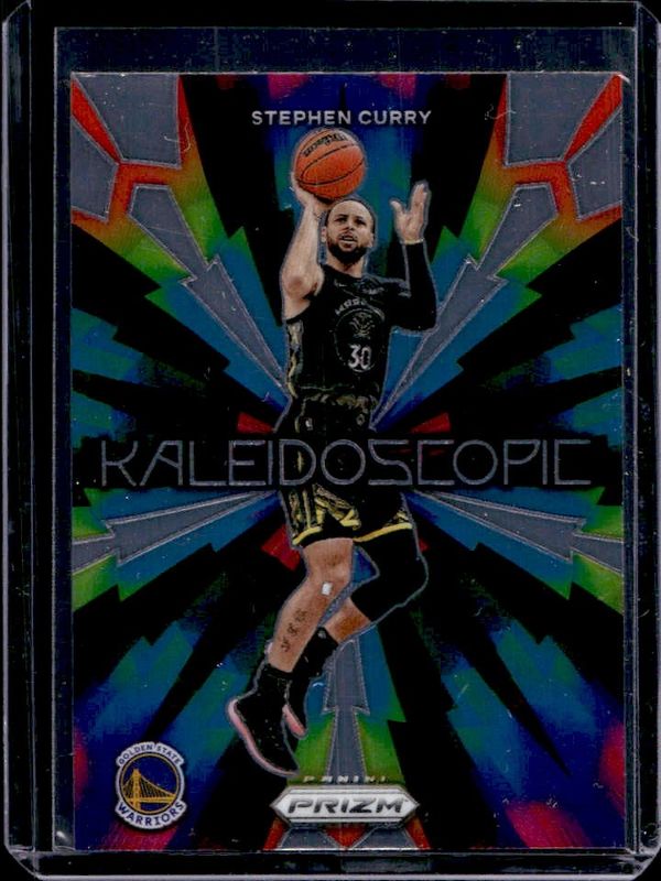The Stephen Curry 2023 Prizm #21 Kaleidoscopic card is 1 of 116 Stephen Curry's card variations in the 2023 Prizm set being tracked by Sports Card Investor, including Base, Blue Wave, Choice Blue Yellow Green, Fast Break, and Green.