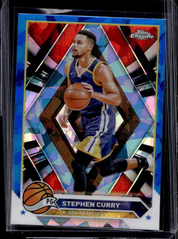 The Stephen Curry 2023 Topps Chrome Sapphire Edition #30 Base card is 1 of 7 Stephen Curry's card variations in the 2023 Topps Chrome Sapphire Edition set being tracked by Sports Card Investor, including Gold /50, Orange /25, Purple /10, Red /5, and Padparadscha /1.