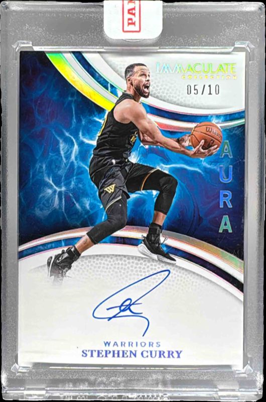 The Stephen Curry 2024 Immaculate #11 Immaculate Aura Signatures /10 card is 1 of 69 Stephen Curry's card variations in the 2024 Immaculate set being tracked by Sports Card Investor, including Base /99, Red /49, International Red /27, Blue /25, and Pink /15.