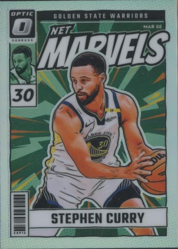 The Stephen Curry 2024 Optic #15 Net Marvels - Holo card in Raw condition has moved down -$14.83 (-36.8%) in the last 30 days and was last sold for $25.50 .