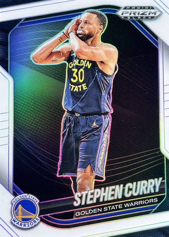 This card is 1 of 26 Stephen Curry's card variations in the 2024 Prizm Black set being tracked by Sports Card Investor, including Red /299, Skewed /249, Basketballs /225, Blue /199, and Purple Ice /149.