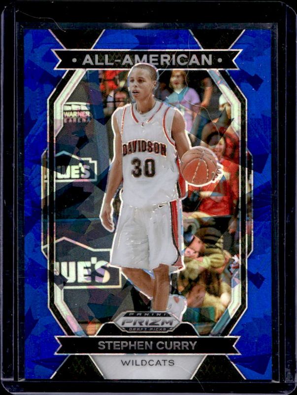 The Stephen Curry 2024 Prizm Draft Picks #13 All-American - Blue Ice /99 card is 1 of 177 Stephen Curry's card variations in the 2024 Prizm Draft Picks set being tracked by Sports Card Investor, including #77 Base, #77b Base, #77 Green, #77b Green, and #77 Green Wave.