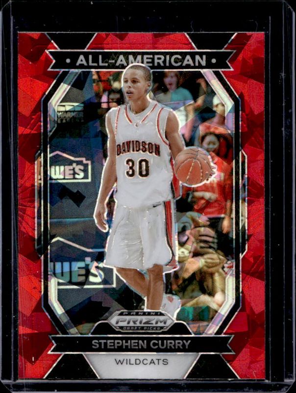 The Stephen Curry 2024 Prizm Draft Picks #13 All-American - Red Ice card is 1 of 177 Stephen Curry's card variations in the 2024 Prizm Draft Picks set being tracked by Sports Card Investor, including #77 Base, #77b Base, #77 Green, #77b Green, and #77 Green Wave.