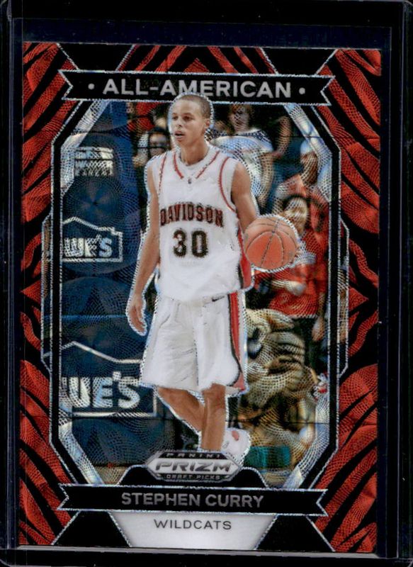 The Stephen Curry 2024 Prizm Draft Picks #13 All-American - Tiger Stripe /(SSP) card is 1 of 177 Stephen Curry's card variations in the 2024 Prizm Draft Picks set being tracked by Sports Card Investor, including #77 Base, #77b Base, #77 Green, #77b Green, and #77 Green Wave.