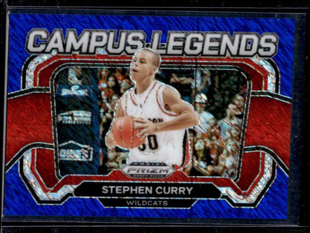 The Stephen Curry 2024 Prizm Draft Picks #2 Campus Legends - Blue Shimmer /19 card is 1 of 177 Stephen Curry's card variations in the 2024 Prizm Draft Picks set being tracked by Sports Card Investor, including #77 Base, #77b Base, #77 Green, #77b Green, and #77 Green Wave.