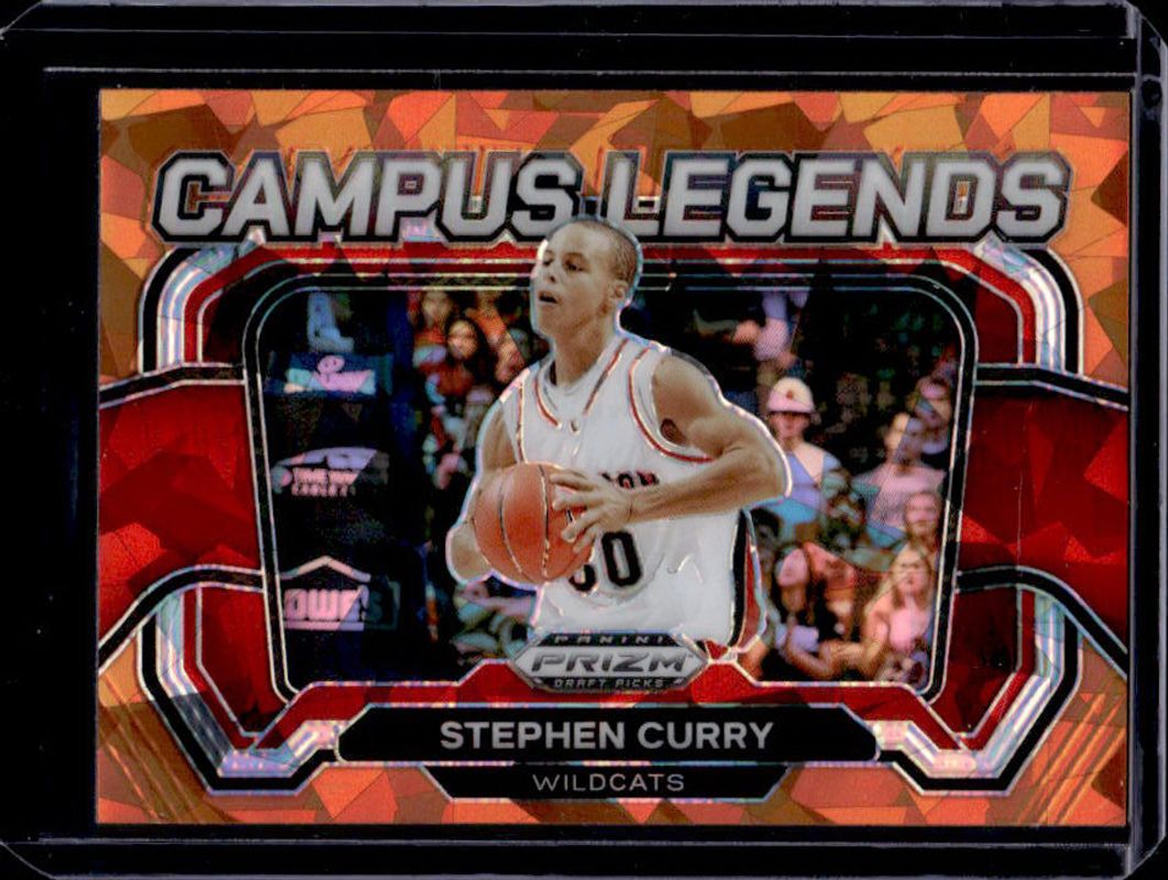 The Stephen Curry 2024 Prizm Draft Picks #2 Campus Legends - Orange Ice card is 1 of 177 Stephen Curry's card variations in the 2024 Prizm Draft Picks set being tracked by Sports Card Investor, including #77 Base, #77b Base, #77 Green, #77b Green, and #77 Green Wave.
