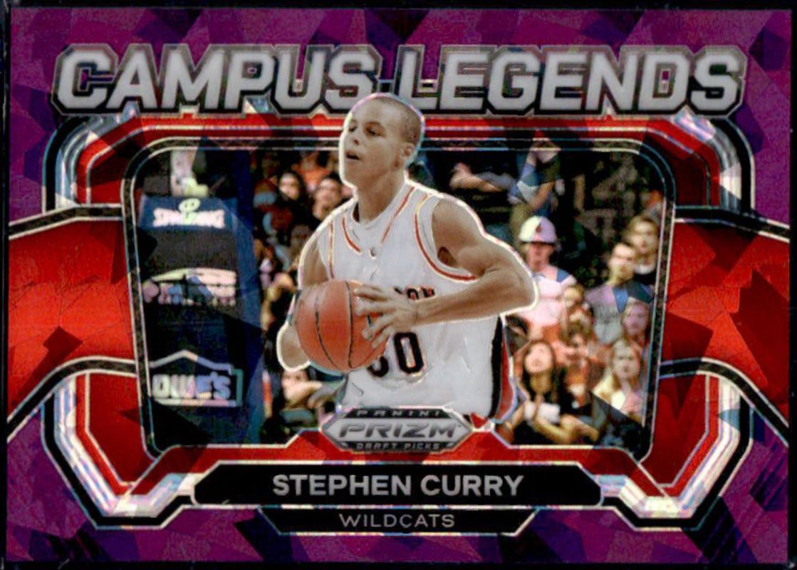 The Stephen Curry 2024 Prizm Draft Picks #2 Campus Legends - Purple Ice /149 card is 1 of 177 Stephen Curry's card variations in the 2024 Prizm Draft Picks set being tracked by Sports Card Investor, including #77 Base, #77b Base, #77 Green, #77b Green, and #77 Green Wave.