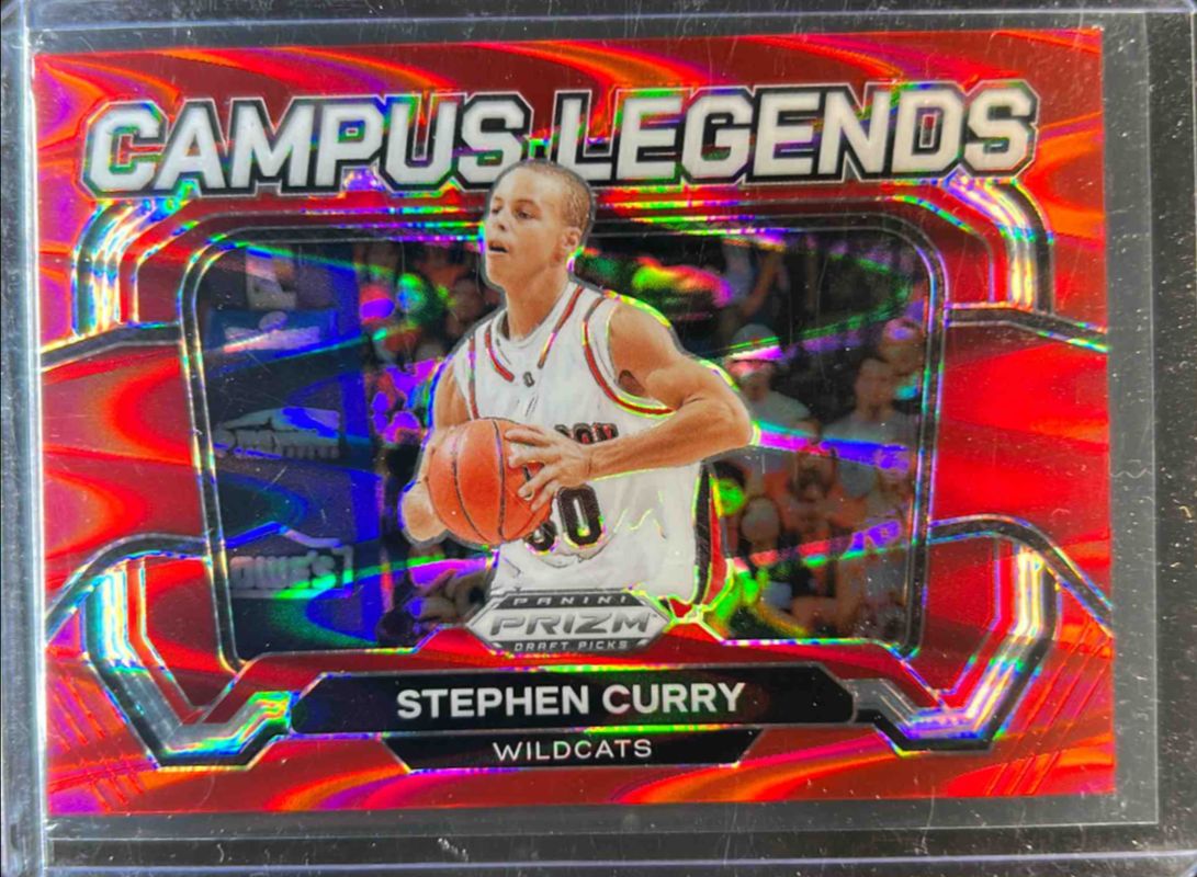 The Stephen Curry 2024 Prizm Draft Picks #2 Campus Legends - Red Seismic /225 card is 1 of 177 Stephen Curry's card variations in the 2024 Prizm Draft Picks set being tracked by Sports Card Investor, including #77 Base, #77b Base, #77 Green, #77b Green, and #77 Green Wave.