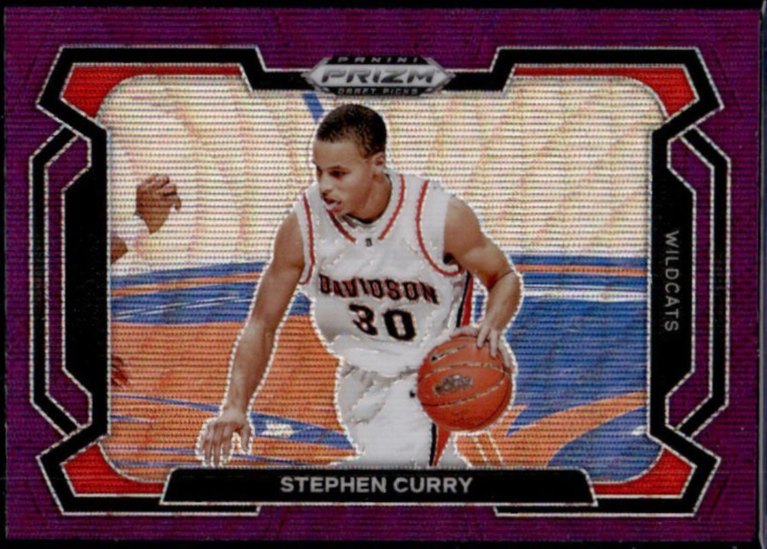 The Stephen Curry 2024 Prizm Draft Picks #77b Purple Wave card is 1 of 177 Stephen Curry's card variations in the 2024 Prizm Draft Picks set being tracked by Sports Card Investor, including #77 Base, #77b Base, #77 Green, #77b Green, and #77 Green Wave.