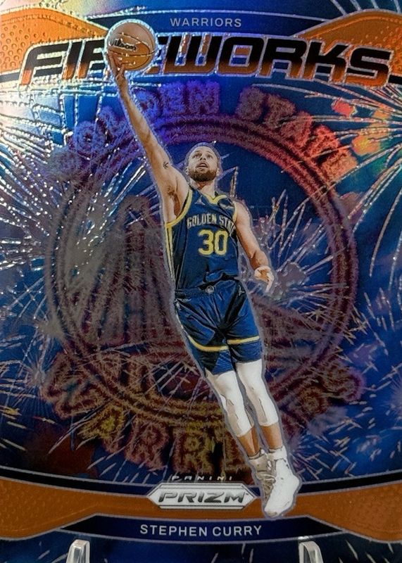 2024-25 Panini Prizm Basketball Stephen Curry Fireworks Orange Prizm 24/49